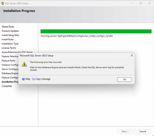 If, upon creating an SQL database instance on Windows 11 PC, the following message appears: